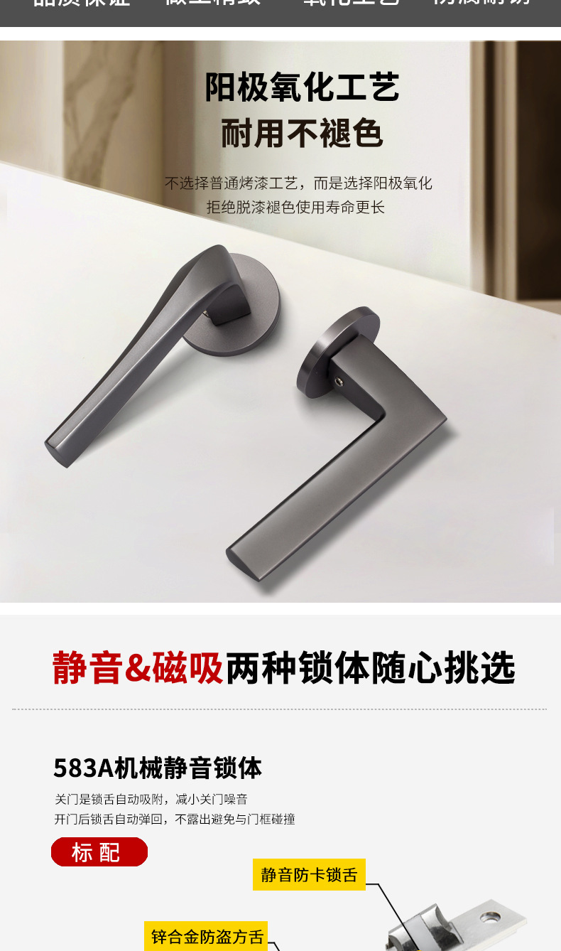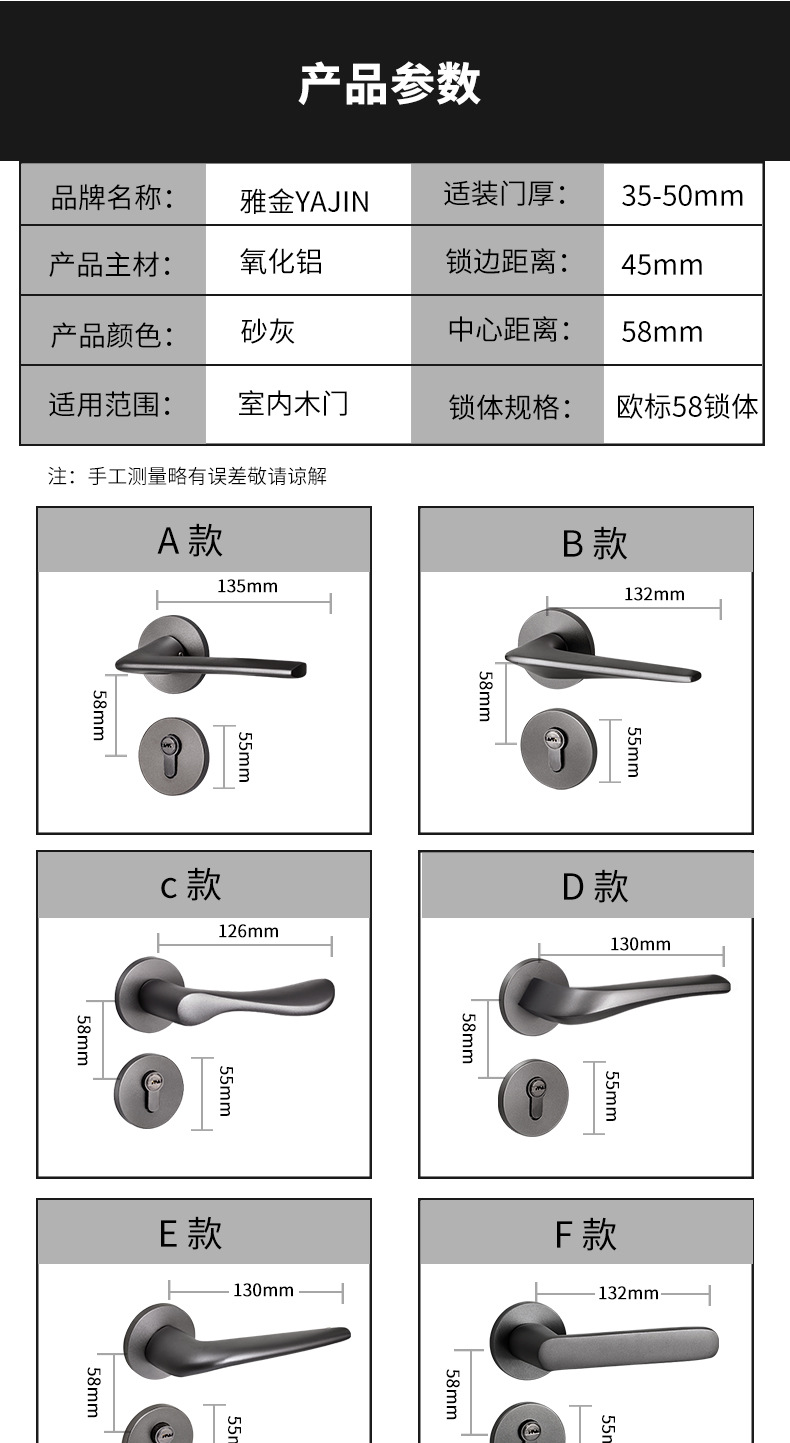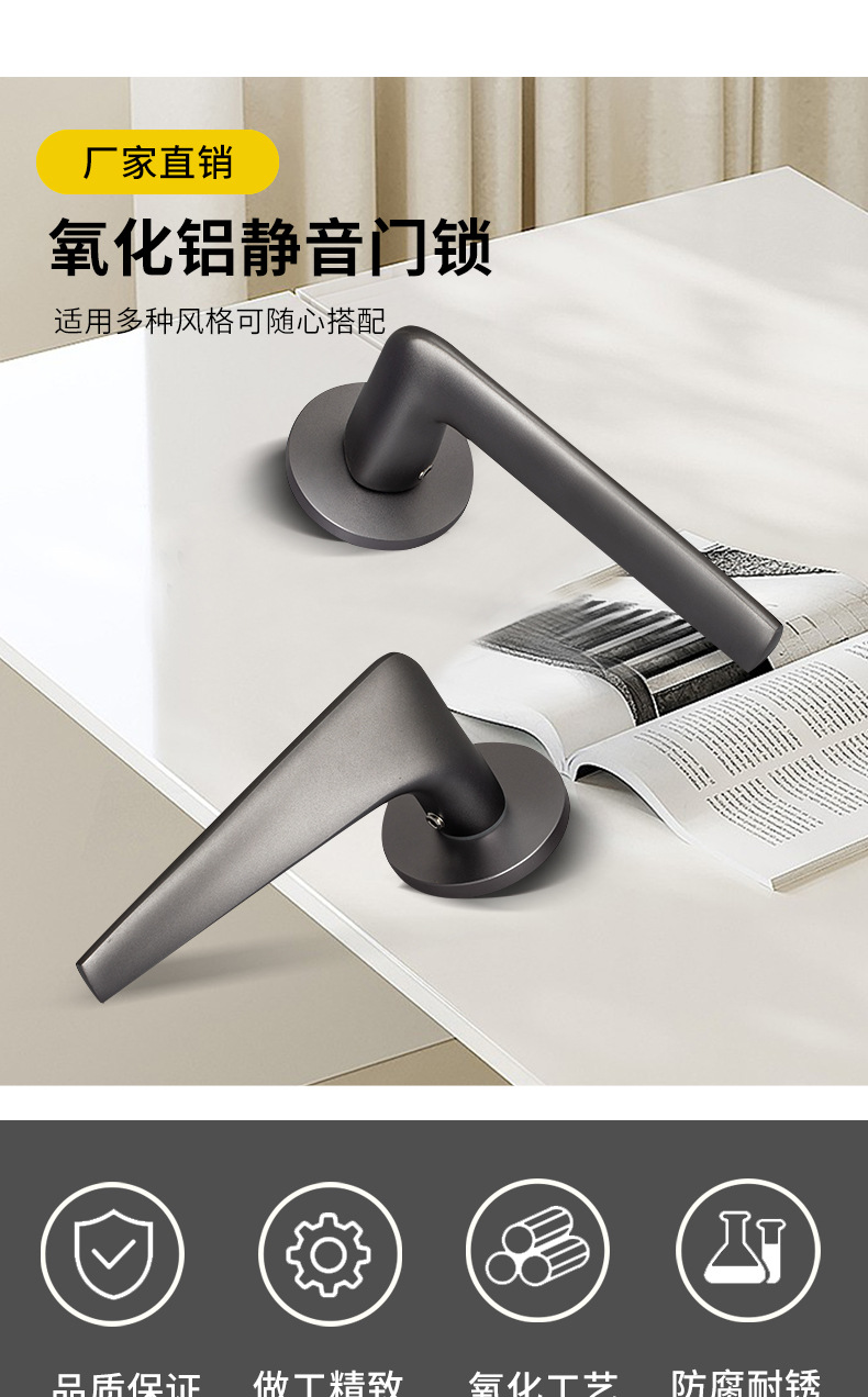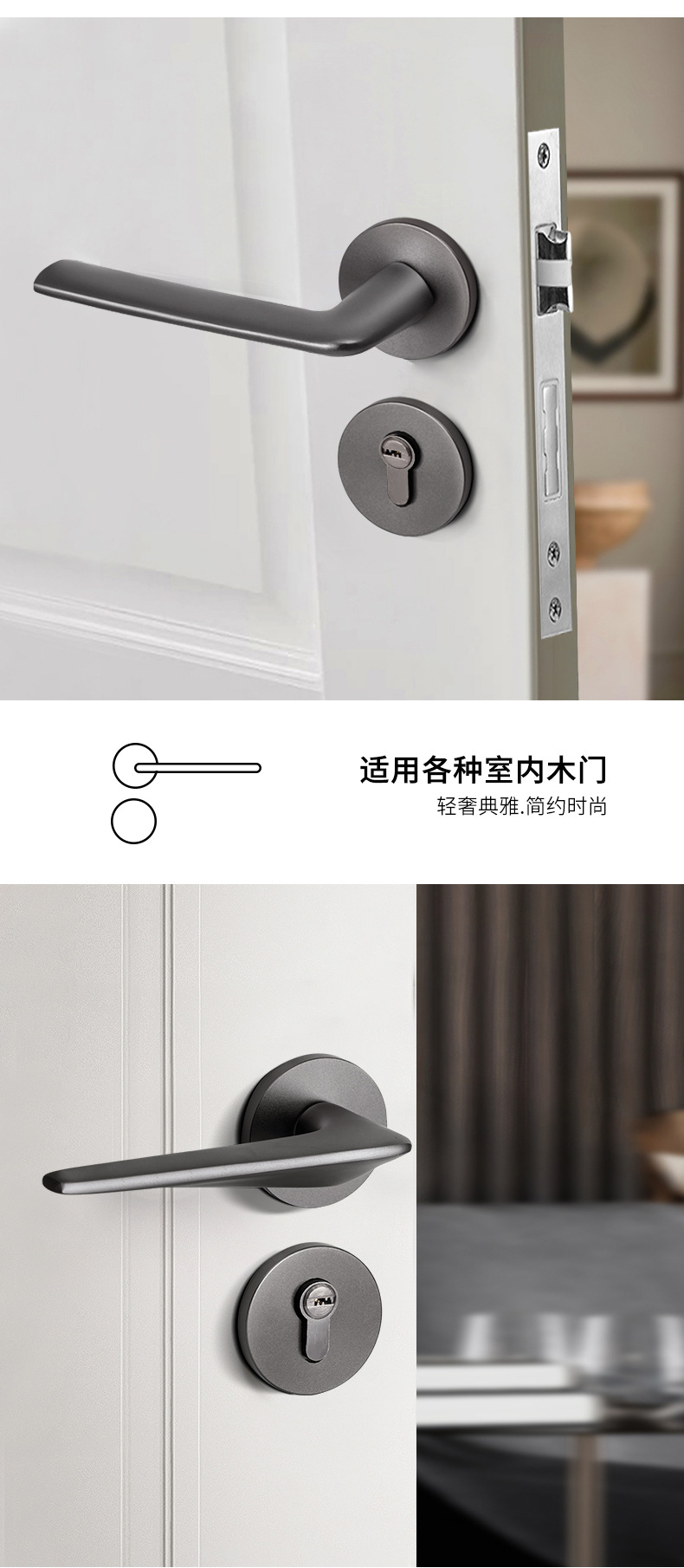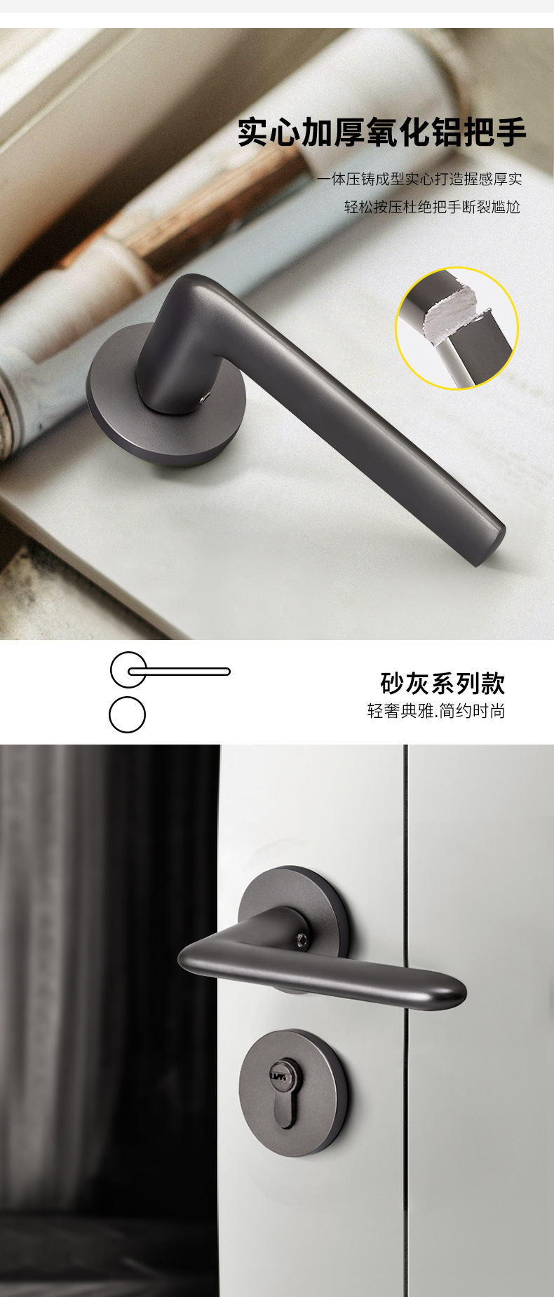 Grey Door Lock Indoor Bedroom Room Door Lock Bathroom Wooden Door Handle Simple Split Lock Magnetic Mute Lock